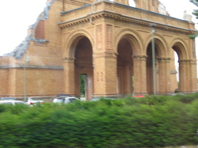 On the way from Central Rail Station to Kreuzberg: Anhalter Station. Or what's left of it: the facade has been left as bombed. I scooted by it quickly in the bus (as befits my drive-by social commentary); but it was a great facade. (This piece of the past, obviously, was kept around.)