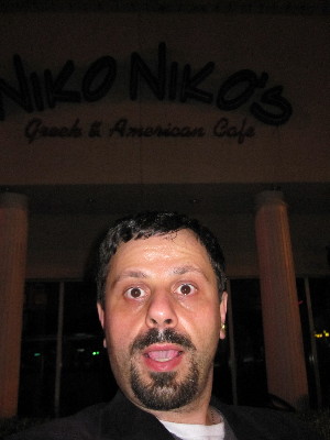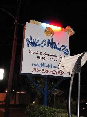 A month back, commenter matternal (Michalis Nikolaou, who noticed that we have the same surname) suggested that if I ever found myself in Houston, I should pay a visit to Niko Niko's Greek Restaurant, 2520 Montrose, Houston Tx. For that its name was like mine.